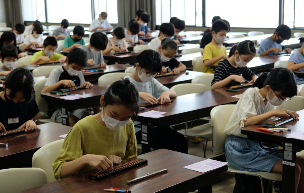 小さな机に、ぎっしり座る子供たち。騒いだり動き回ったりする子はほとんどおらず、全員が静かに集中して、目の前のそろばんをパチパチとはじいていました。