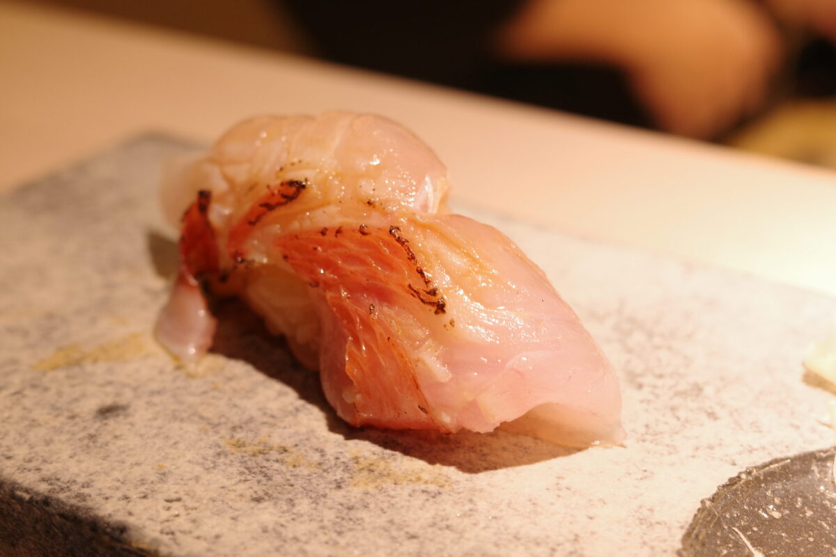 鯵は鮮度抜群で、口の中でとろけるような脂のノリ。春子鯛は香ばしく炙られていて、ふんわりとした食感の後に広がる皮目の香りがたまりません。