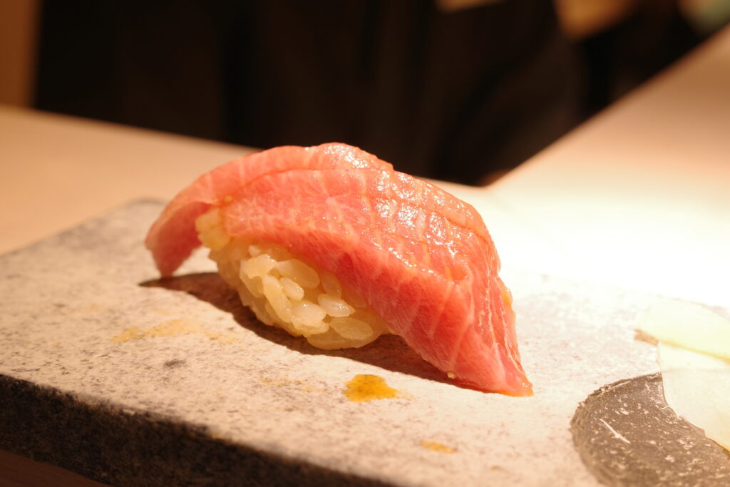 赤身特有の酸味と鉄分の旨味のバランスが絶妙で、ほどよく解けるシャリとの相性も抜群です。