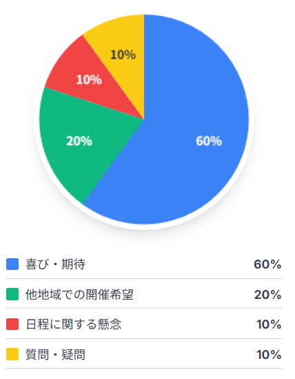 今回、発表されたミャクミャクファンとっては嬉しいファンミーティングの告知に、発表直後からコメントが相次ぎました。SNS上に寄せられたコメントは具体的にはどんな反応だったのでしょうか。