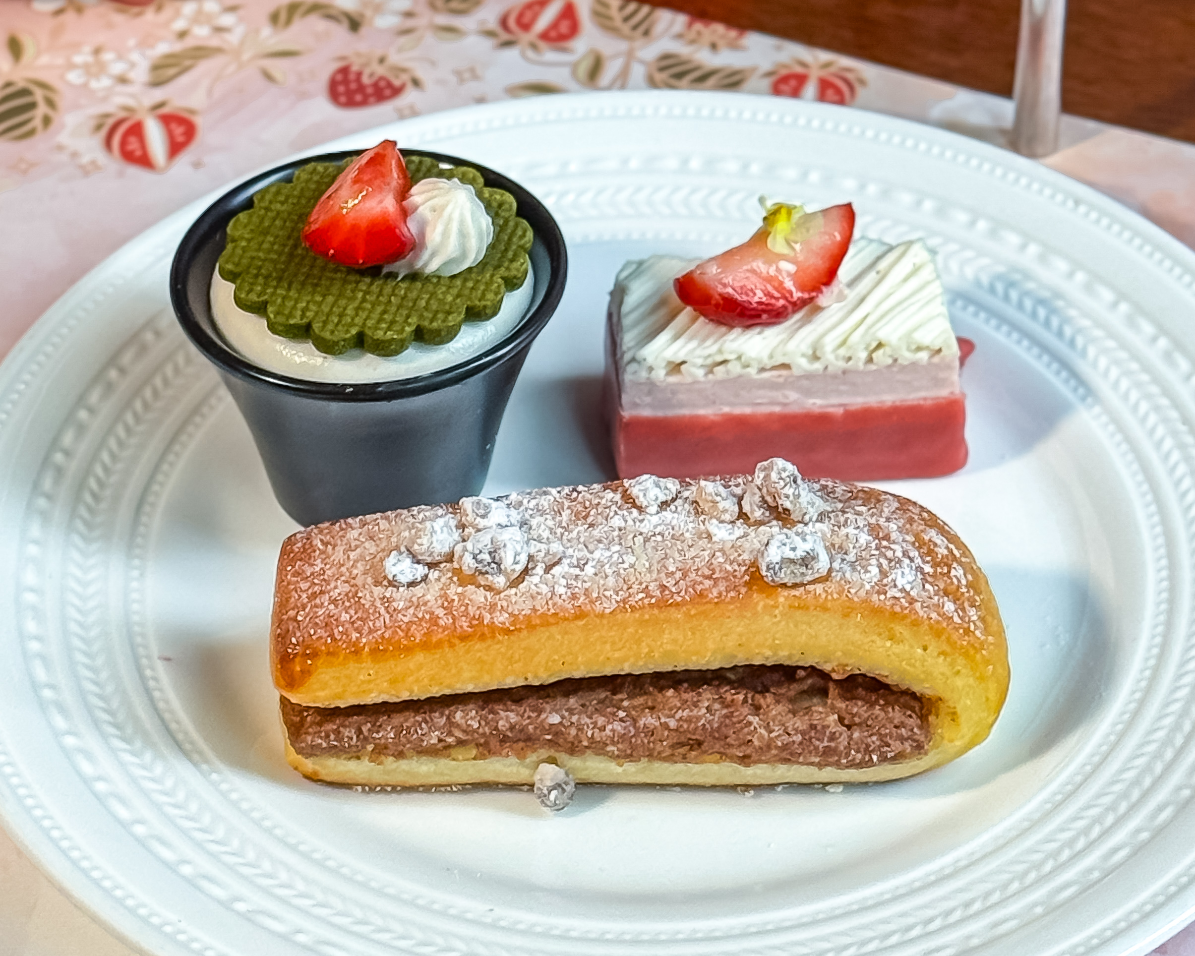 バンケットシェフ片山氏が手掛けるセイヴォリーにもいちごやピンクカラーの「ローストビーフとイチゴのブリニサンド」や「スモークサーモンムースとオシェトラキャビア もなか」などが並び華やかです。