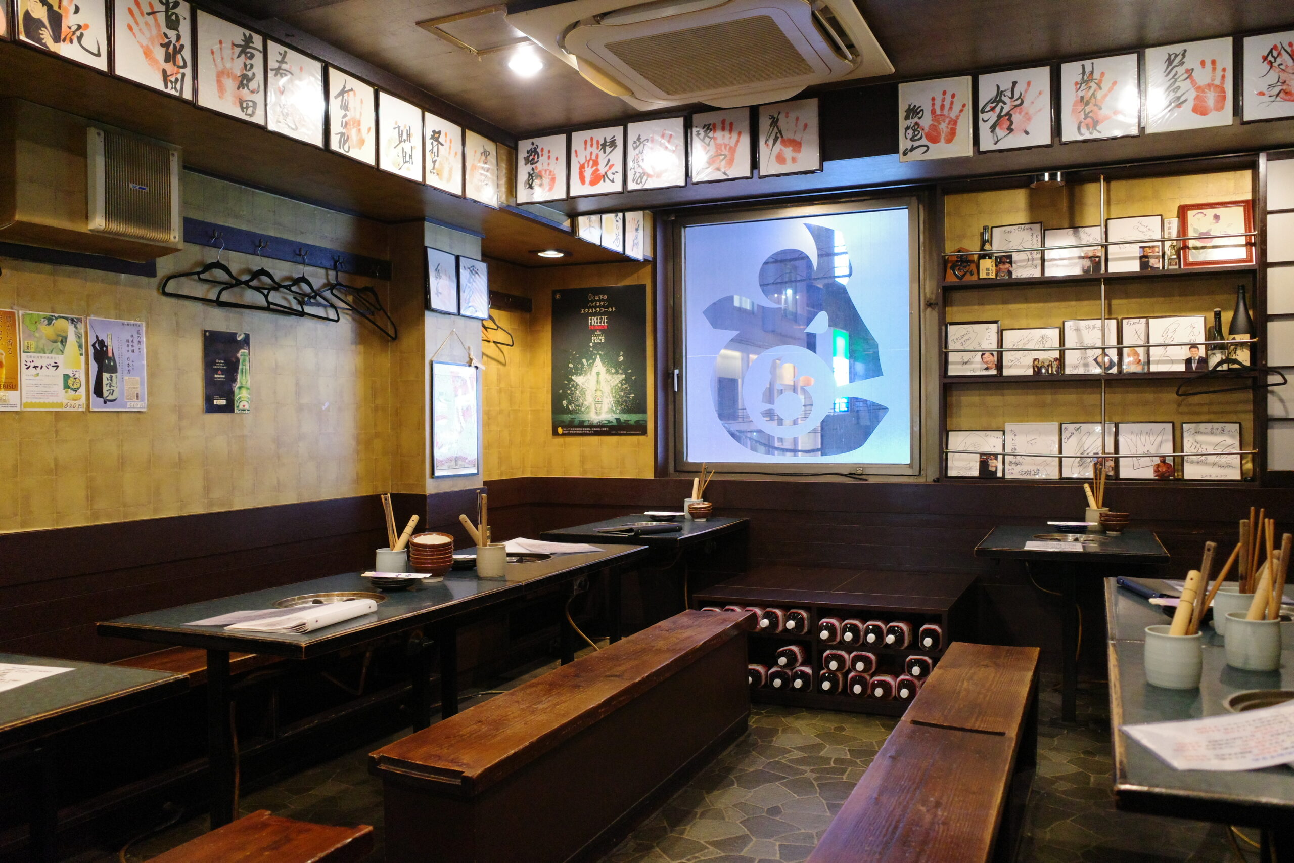 壁には力士の手形や、有名人のサイン色紙がずらり!色褪せたその風合いが、40年以上の歴史を物語っていて、なんとも言えない良い味を出しているんです。