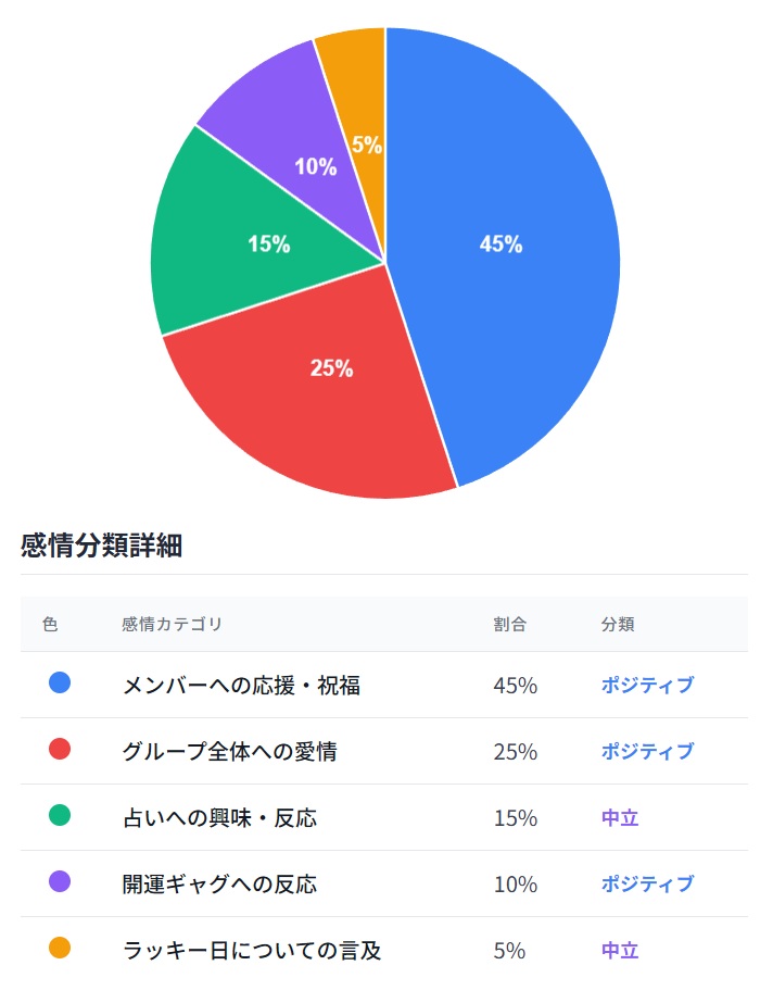 抜群のDOさんの的中率に寄せられたSNS上のコメントは、emogram編集部の独自分析によると、以下の通りに分類されました。