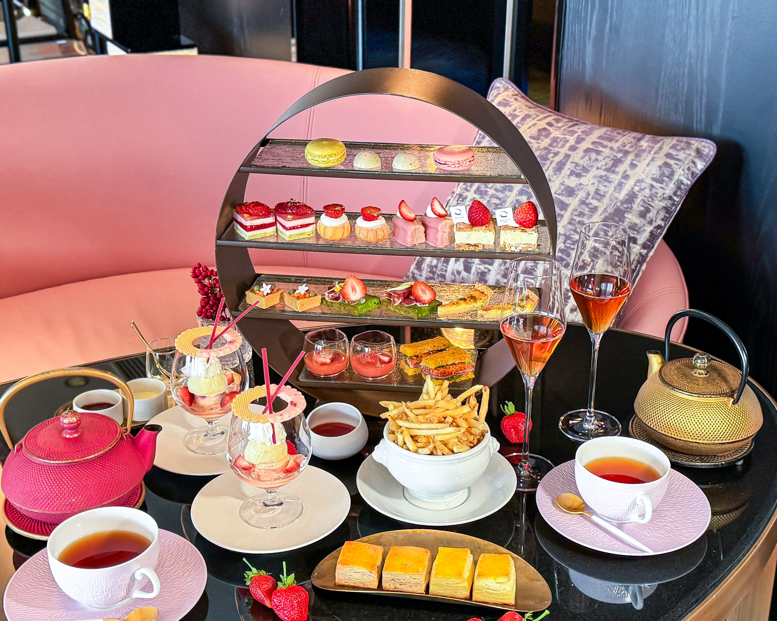 フォションホテル京都の10階 『サロン ド テ フォション』では、 甘くて大粒の果実で知られる福岡産 「あまおう」 を贅沢に使用した 「あまおうアフタヌーンティー」 が開催されています。