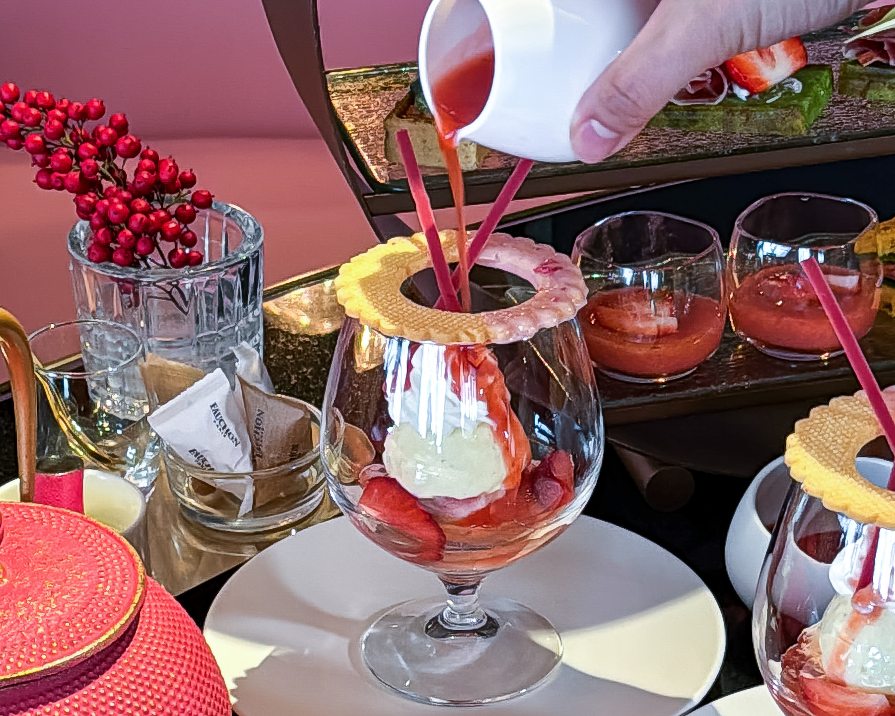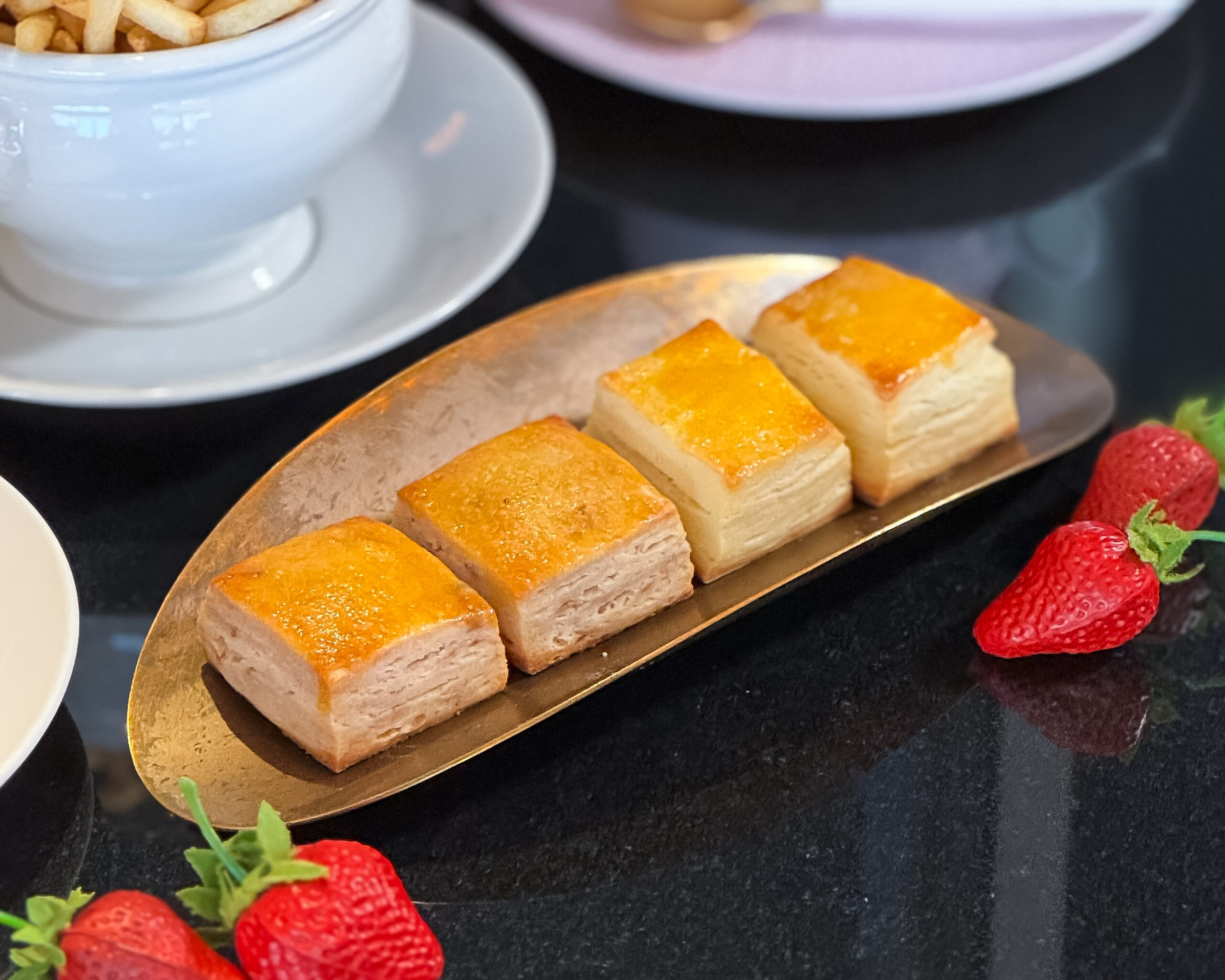 スイーツではサクサクのパイとたっぷりのカスタードクリーム、 そして大粒のあまおうが乗ったナポレオンパイに魅了されました。