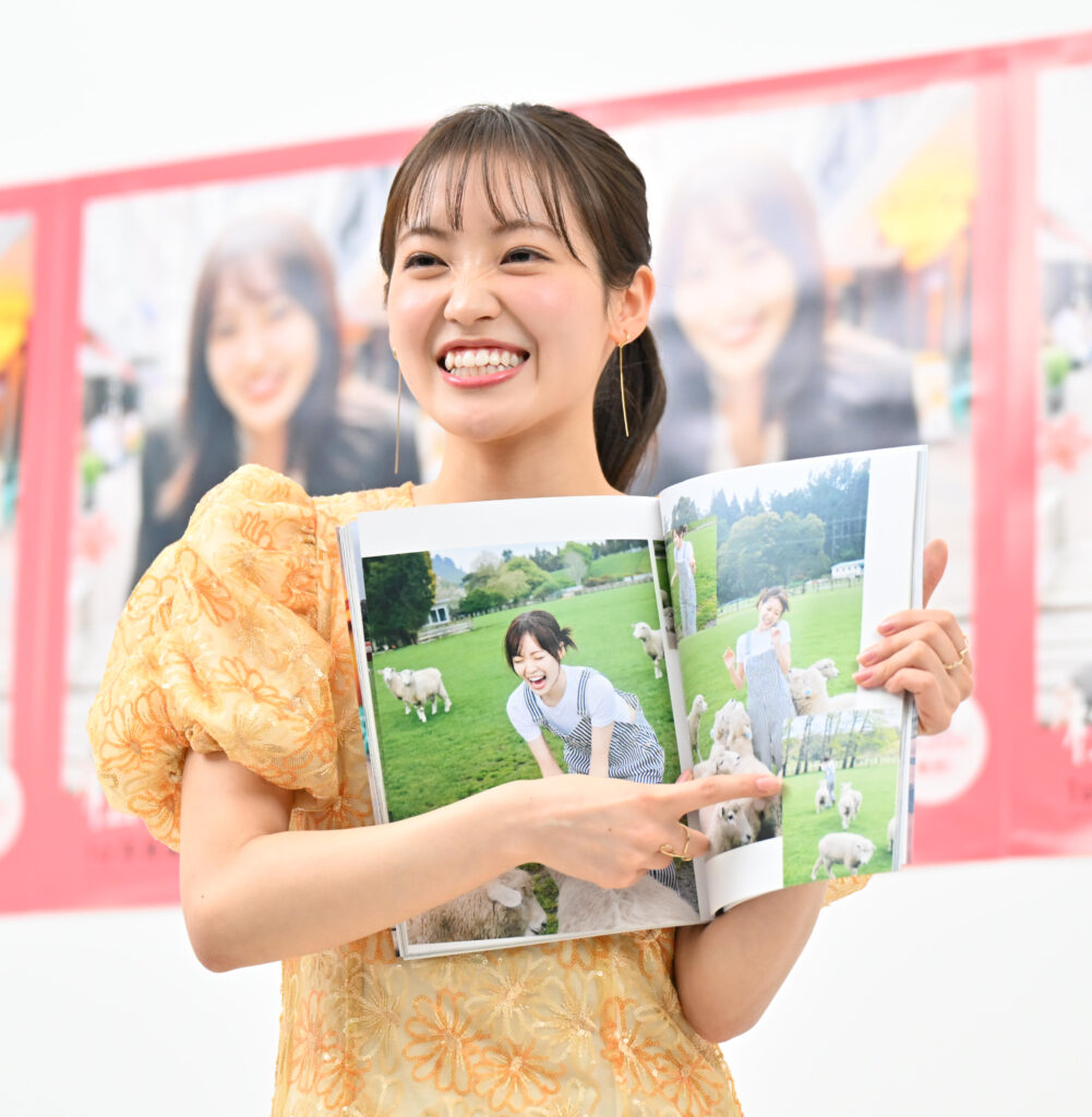 ニュージーランドのオークランドとロトルアで撮影した写真集。お気に入りだというのは羊と遊ぶカットで、「牧場についたら羊さんが私たちを見ていて。逃げたりもしなくて、かわいらしくて愛おしくて。餌がなくてもついてきてくれました」と話しました。
