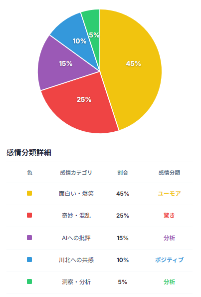普段はボケまくる川北さんがAIに対して厳しくツッコミを入れ続けた実験は、ホラー作品さながらの異様なラストで幕を閉じます。