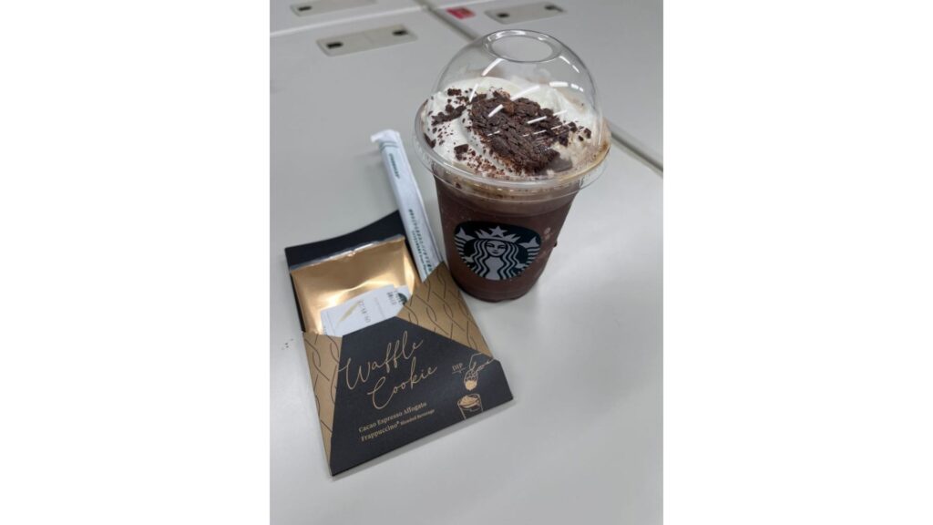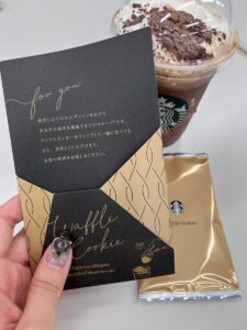 今回のフラペチーノは、別添えのクッキーも合わさり、高級感ある見た目で写真映えするな、とも思いました。