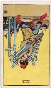知性を示す、7本の【剣】から、5本を抜いているこのカードが逆位置で出た今週。本当のことと噓を混ぜている人や、一方的に誰かが得をする計画には気をつけましょう。