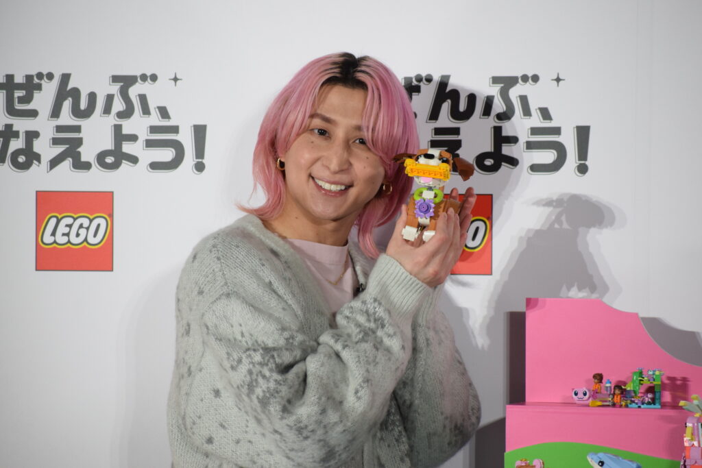 佐久間さんは2025年12月に「レゴ(R)クリエイティブフレンド」に就任してから、自宅にインテリアとしてレゴ(R)ブロックを飾っているといい、「大人になって改めて触れてみてすごくワクワクします」と満面の笑みを見せました。