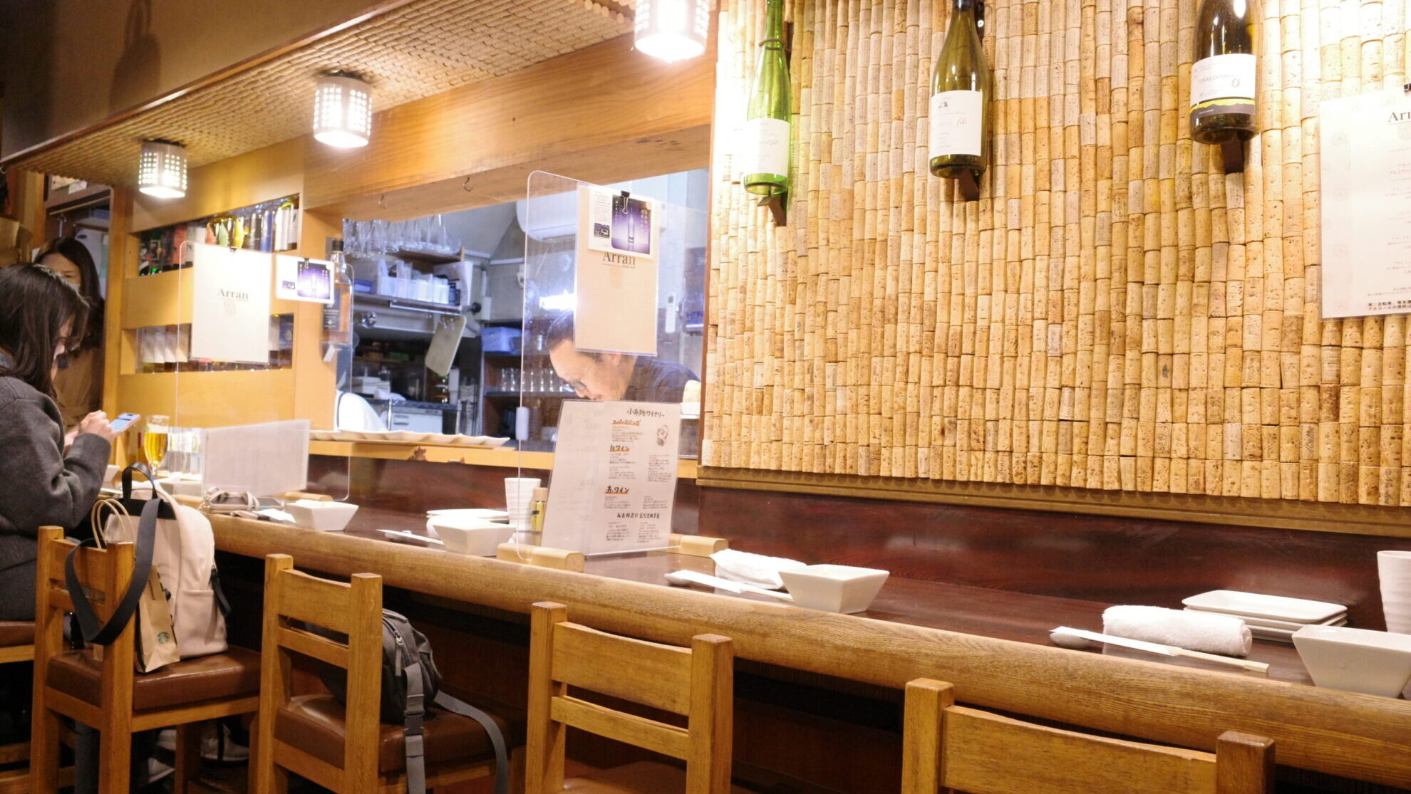 店内はモダンで静謐な空気が漂いますが、よく見ると店主お手製のコルクの壁や、やかんを再利用したユニークなライトが飾られていて、遊び心もたっぷり。