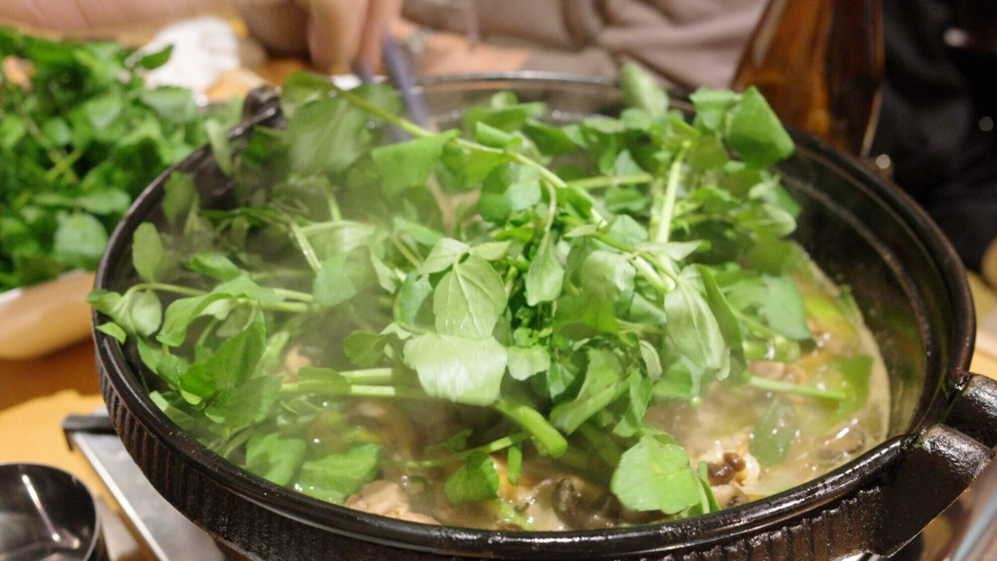 たっぷりのクレソンが添えられていて、その爽やかな苦味と食感が、濃厚な出汁と絶妙にマッチします。