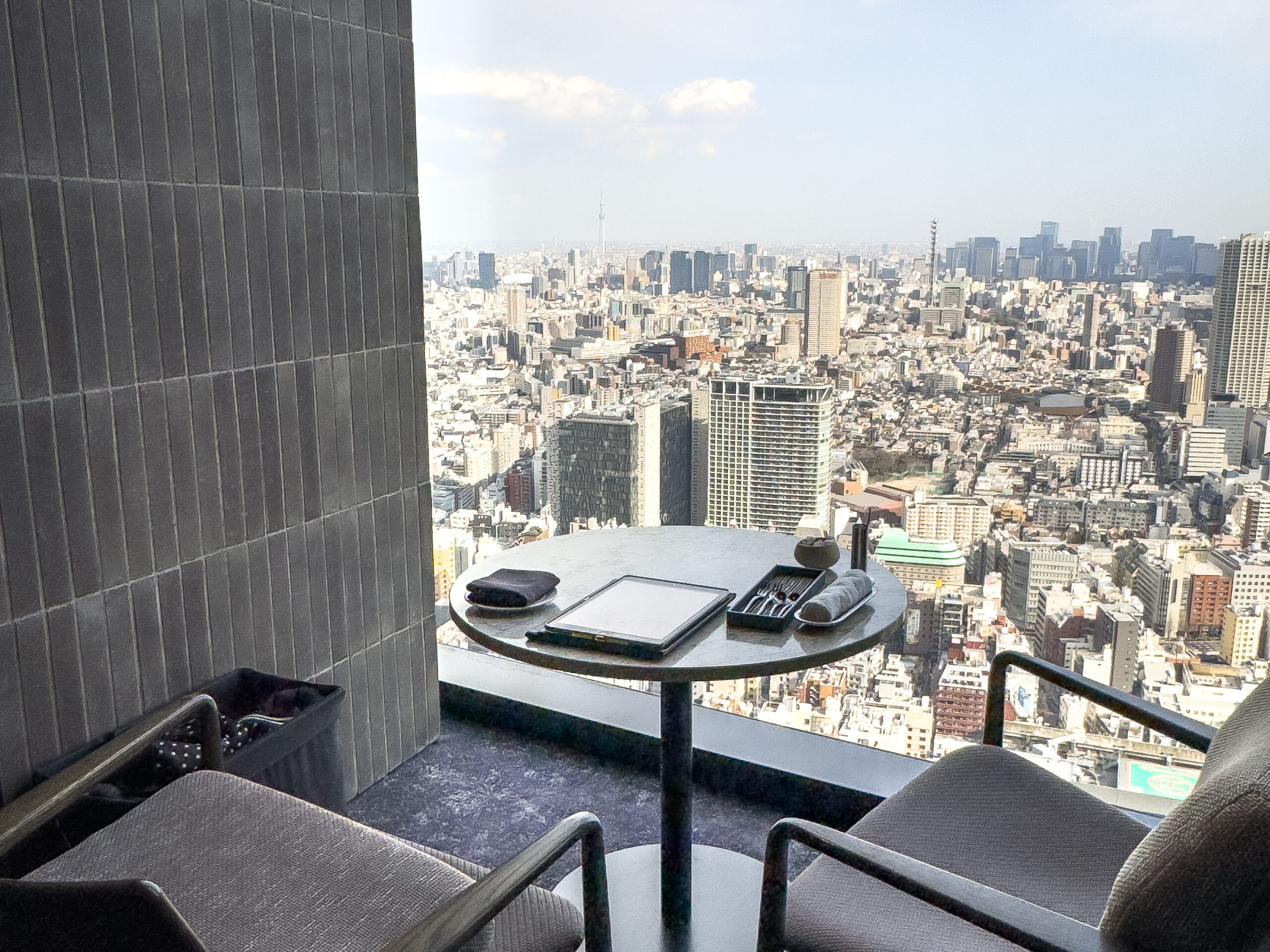 新宿の絶景を一望できるラウンジで、 遠くスカイツリーまで見えます。