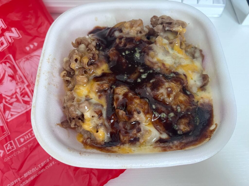 牛丼だけど、いい意味で牛丼っぽくなくて、デミグラスソースと牛丼ってこんなに合うんだな、と感じた商品でした。