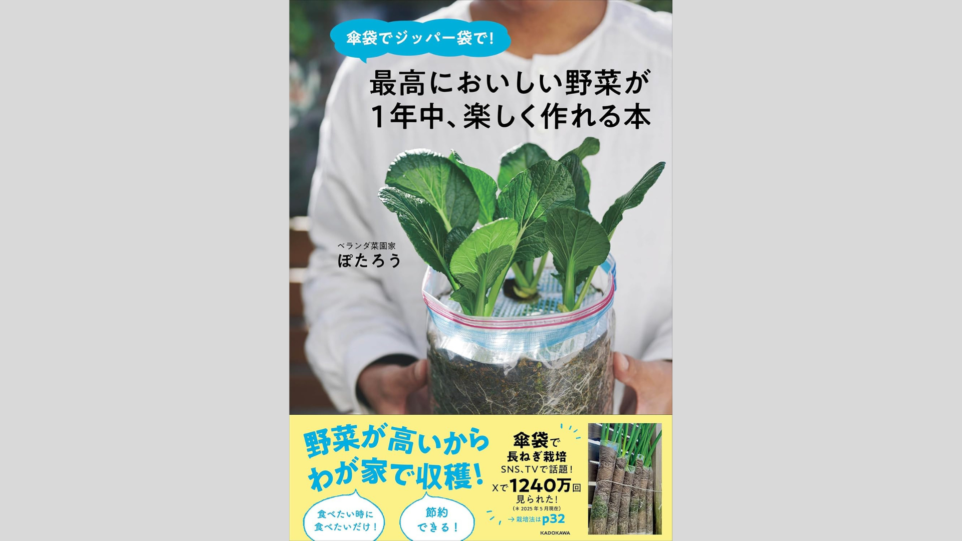 本の中では、Xで1240万回表示された「傘袋での長ねぎ栽培」をはじめ、ジッパー袋で育てる小松菜、豆乳パックのラディッシュなど、目からウロコのアイデアが33種類も紹介されているそうです。
