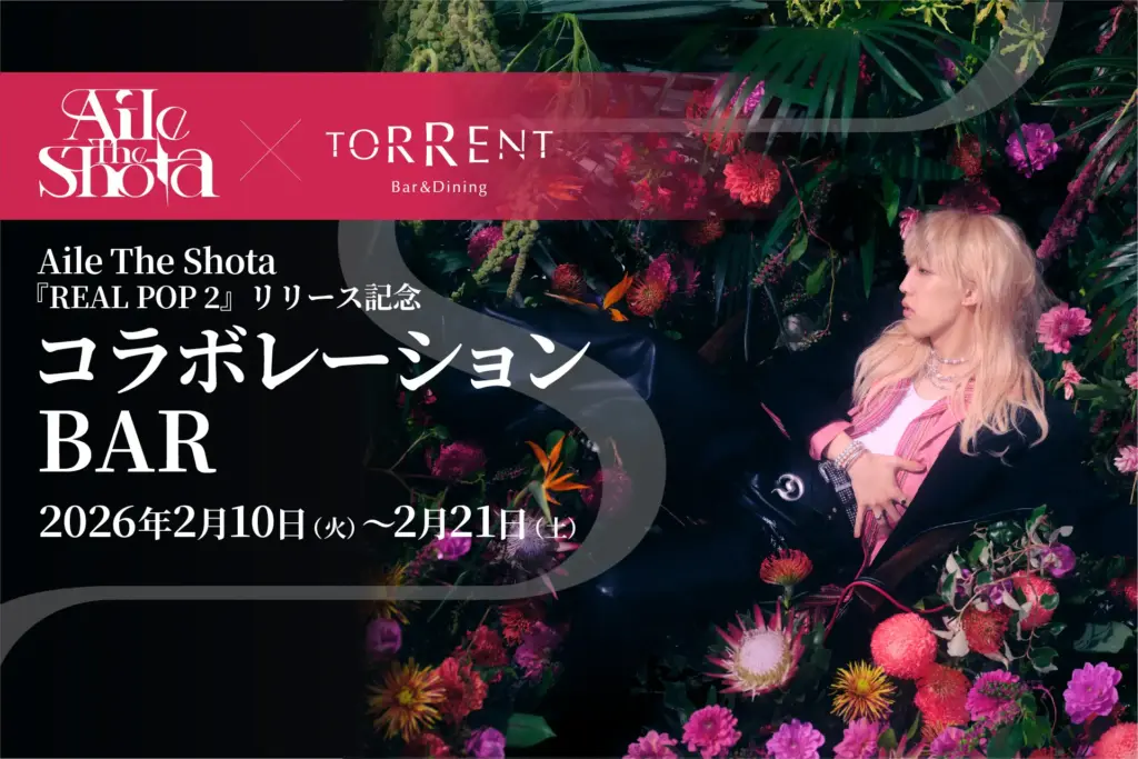 2022年1月に「AURORA TOKIO」でBMSGレーベルよりデビューしたソロアーティスト、Aile The Shotaさんの2ndアルバム「REAL POP 2」が2月18日にリリースされ、発売を記念したコラボレーションバーが東京・渋谷に10日オープンしました。