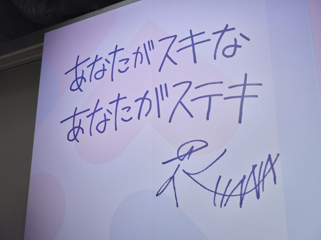 「あなたがスキなあなたがステキ」というメッセージとサインも展示されていて、HANAらしいメッセージにHANAファンの筆者の心も思わず温かくなりました。