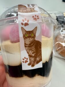 甘いカフェオレムースとほろ苦いコーヒー寒天のバランスが絶妙で、コーヒーが苦手な筆者もペロリと完食しました。側面の猫ちゃんシールも必見です。