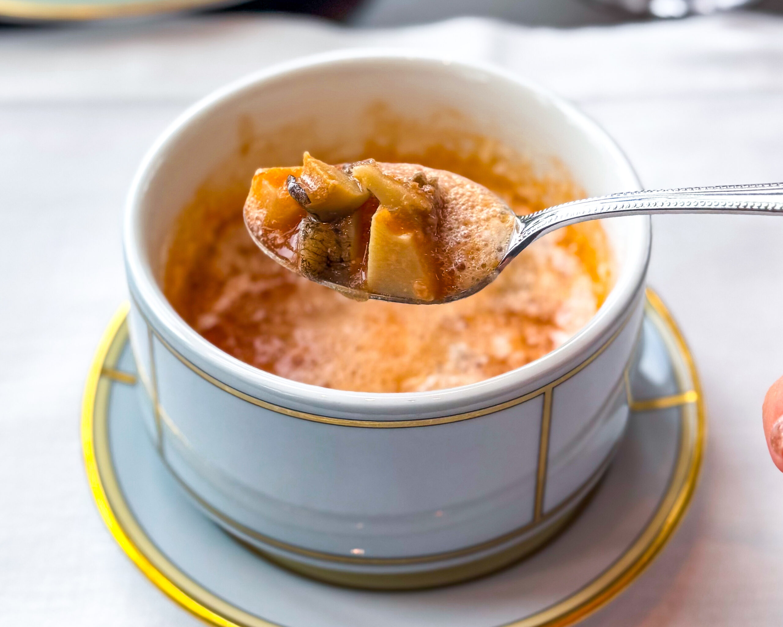 クラムチャウダーは冬に嬉しい一品。マンハッタンスタイルの赤いクラムチャウダーに、白いふわりとした泡の二重奏。身も心も溶けるような美味しさです。なんと贅沢に鮑が入っています!