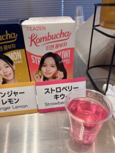 TEAZENのコンブチャは全16種類とラインアップが充実していて、3種(ピーチ・レモン・シャインマスカット)以外にも試飲しました。