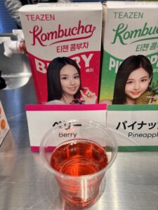 コンブチャは通常砂糖で発酵させますが、玄米のでんぷんを使用することで低カロリーを実現していて、この独自技術は韓国で特許取得済みということです。