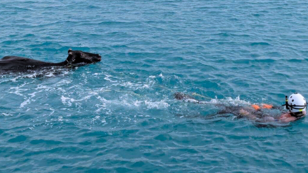 海難事故の救助を任務とする潜水士ですが、今回の対象は人間ではなく、小さな子ウシ。それでも彼らの使命感に変わりはありませんでした。