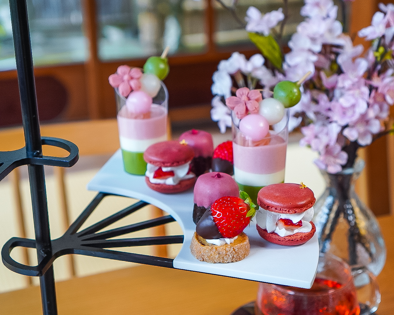 スイーツは和と洋が融合した、見た目も味も洗練されたものが盛り付けられています。ほのかに香る桜と甘酸っぱいイチゴの絶妙なマリアージュを堪能できる内容です。