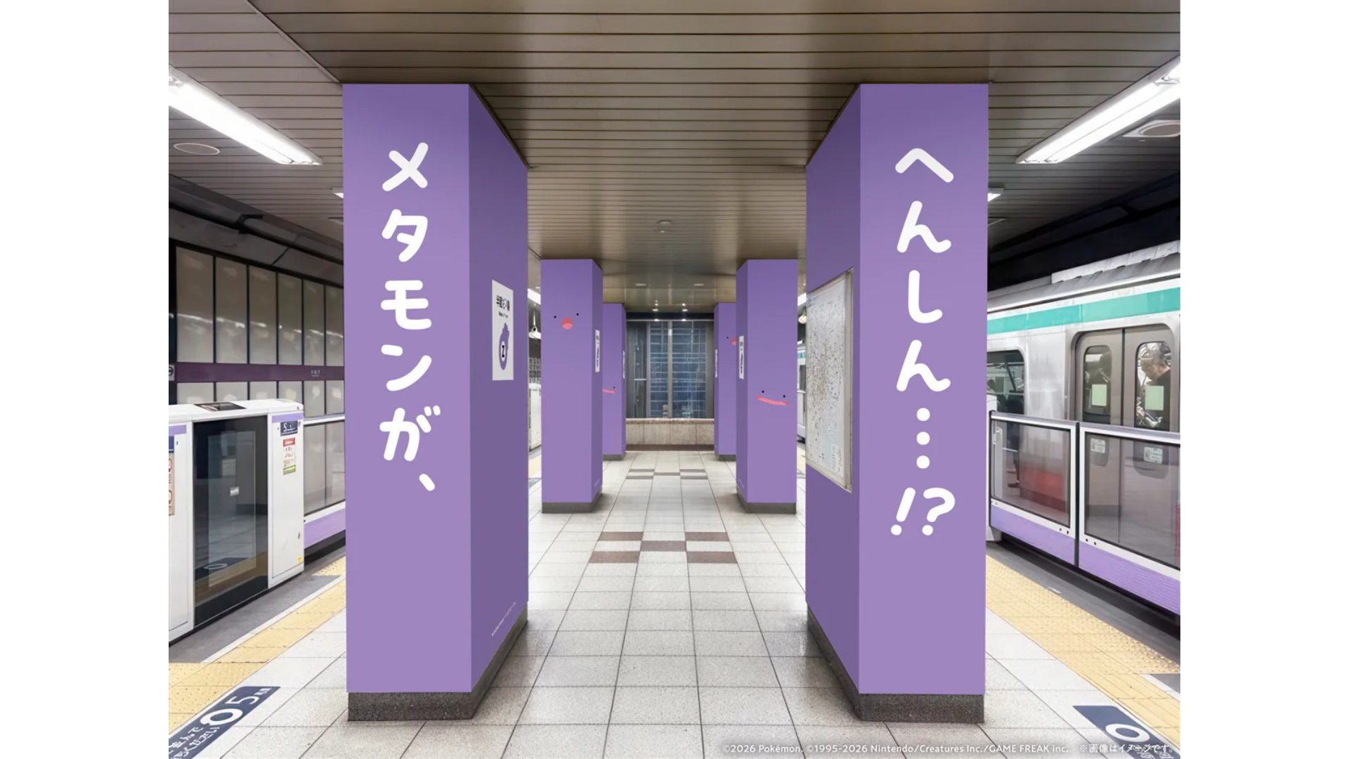 紫色でおなじみポケモンの「メタモン」が、東京メトロ半蔵門線を〝へんしん〟させました!