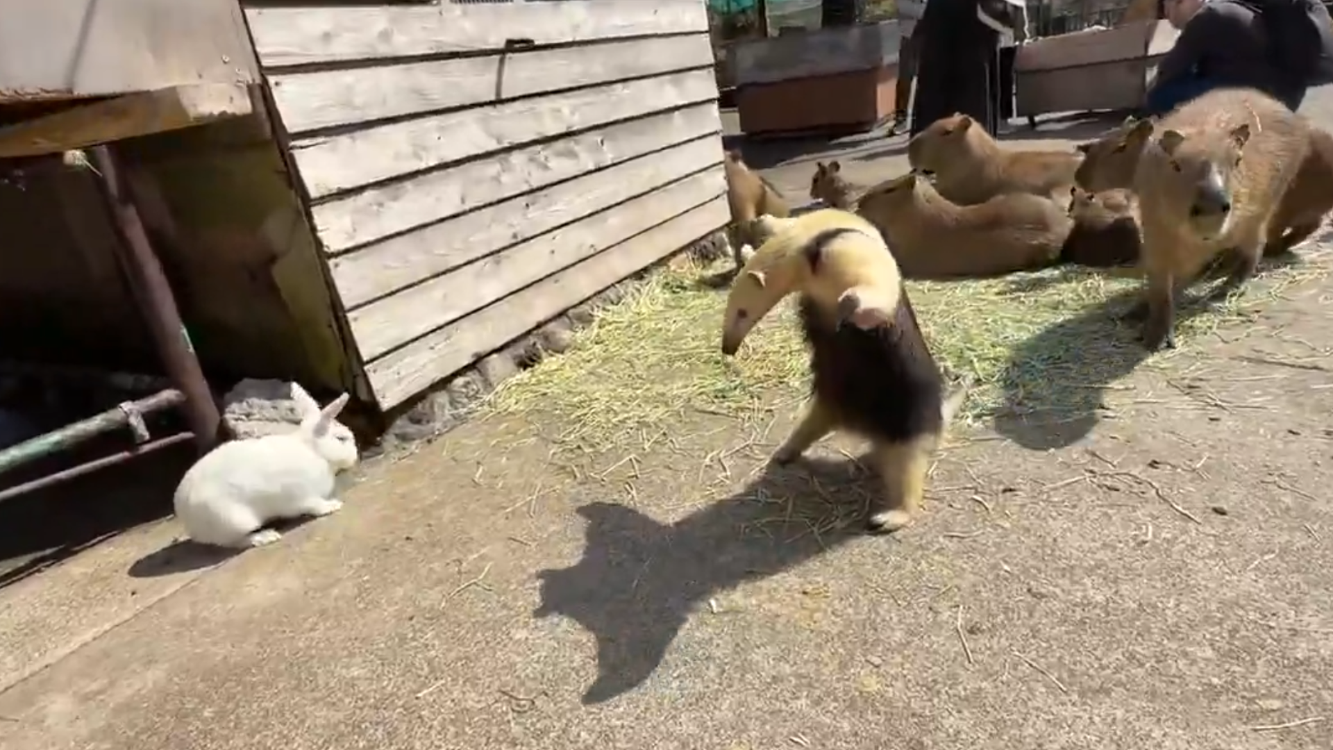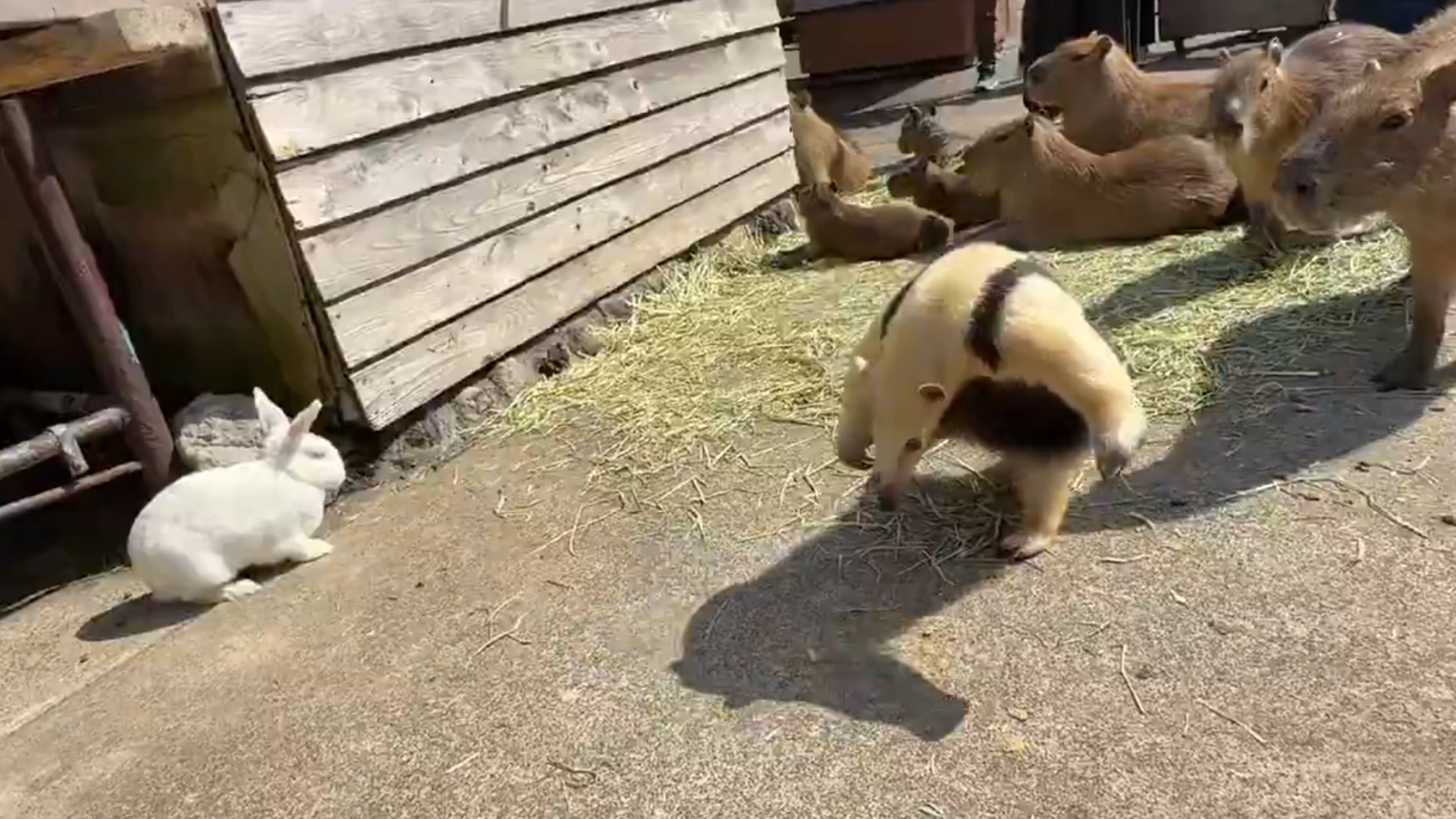 ミナミコアリクイの威嚇ポーズは「威嚇」のはずなのに、まったくカイウサギに効いてないのがかわい過ぎます。しかもなぜか、イフちゃんの後をとことこ付いていくカピバラたち…。なおぱんださんのカメラが捉えた、奇跡のような「多種族交流」に、週明けの疲れも吹き飛びました!