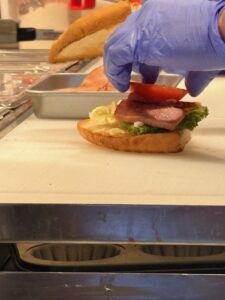 今回、筆者が試食させてもらったのは、「プレミアムホットサンド BLT」(税込み590円)で、その製作工程から見ることができました。
