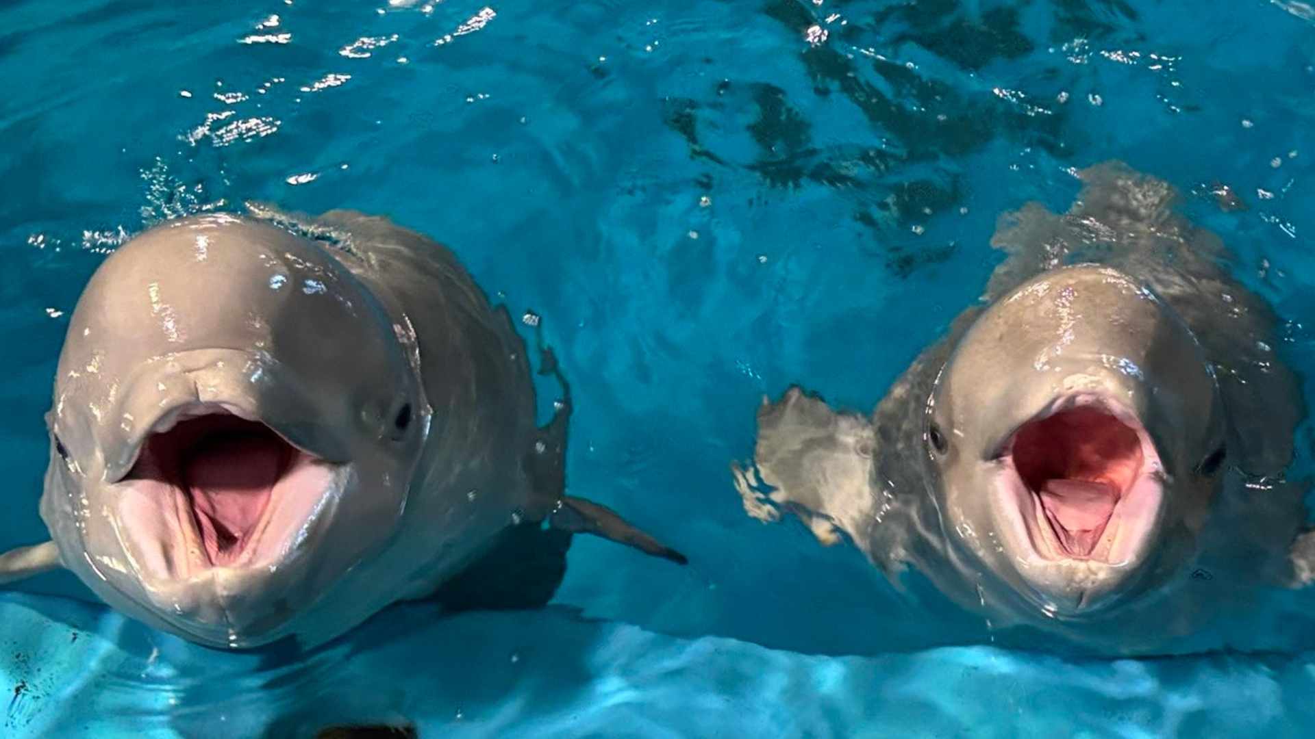 元気に新生活をスタートさせた2頭には、本館のシロイルカパフォーマンスプールの隣にある「ホールディングプール」で会うことができます。