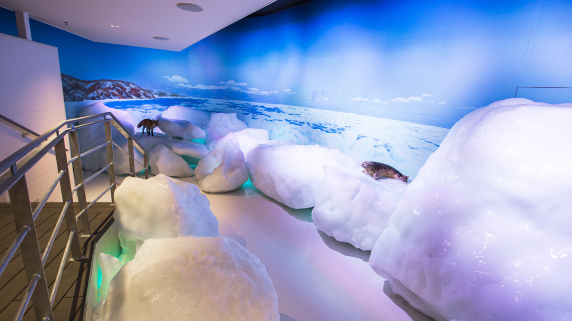 オホーツク流氷館には、一年中本物の流氷に触れられる「流氷体感テラス」があります。テラス内は常にマイナス15℃に保たれ、流氷が溶けることはありません。