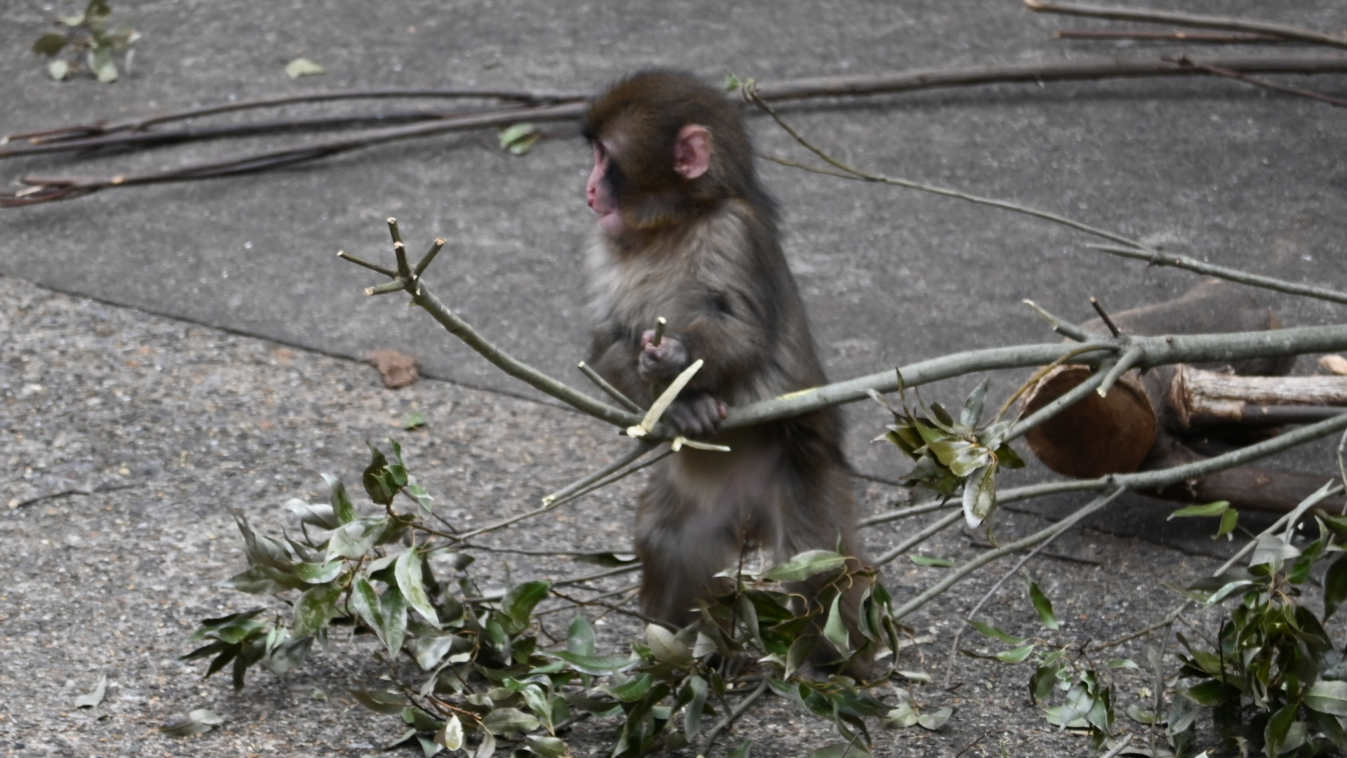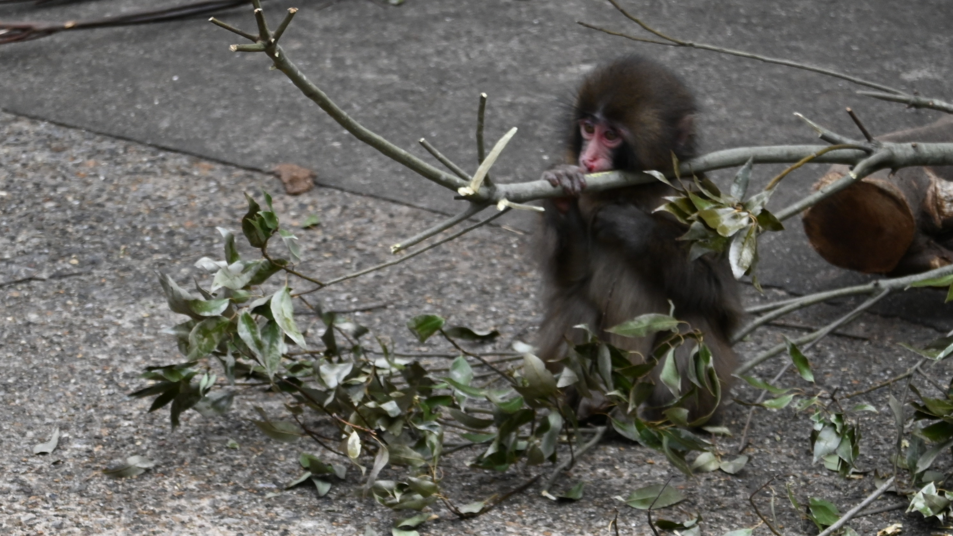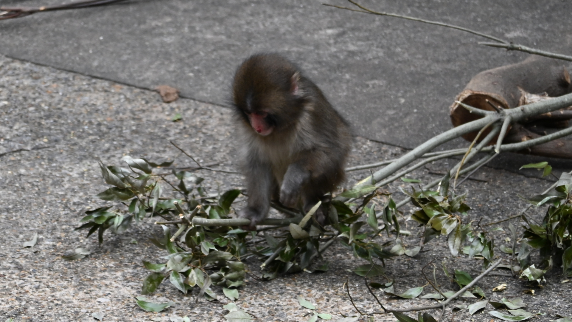 はっぱを「はむはむ」しているパンチくんがかわいくて、何度も見てしまいます。ニホンザルは雑食で、こうして食べるサル山の葉っぱも重要な栄養源になっているそうです。食物繊維たっぷりの葉っぱをたくさん食べるパンチくん、すくすく育っている様子に心が温かくなりました。