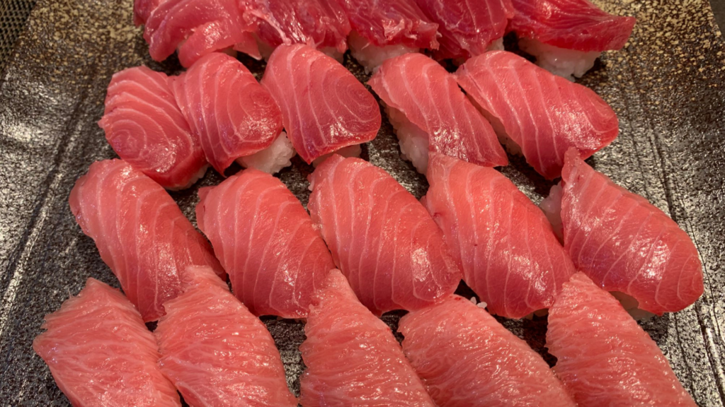 朝ごはんから、こんな山盛りの本マグロ丼を食べるなんて…。