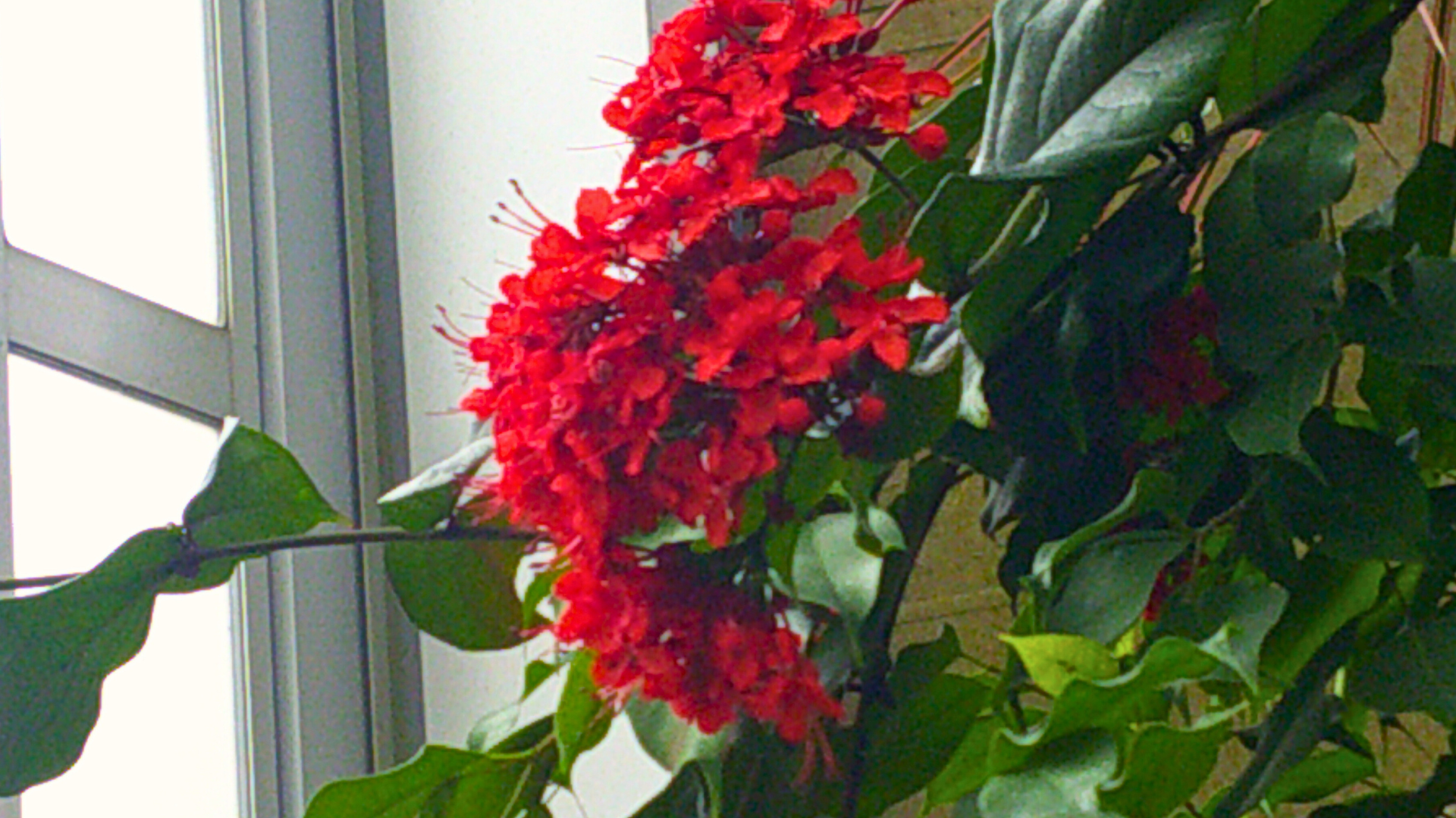 動物園エリアのすぐそばにある、大きな温室「観賞植物園」も見逃せません。 世界中の珍しい植物が集まるこの場所で、今まさに主役を張っているのが、見事な赤い花を咲かせた「ベニバナクサギ」です。