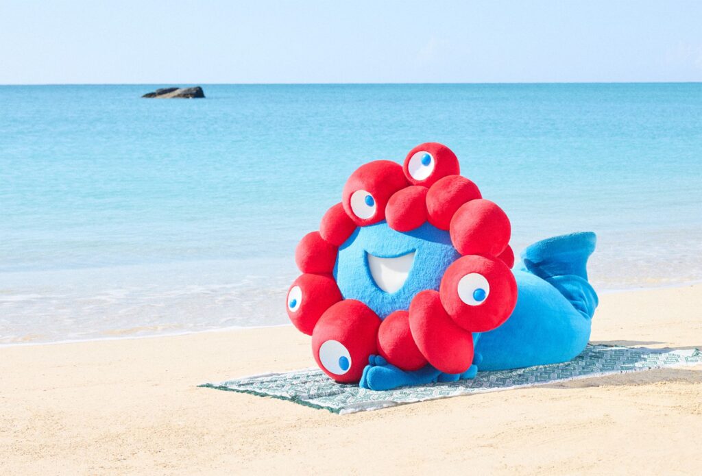写真集はカラー全224ページで、沖縄で撮影されました。青い空と透き通る海に囲まれたロケーションの中、ビーチではしゃぐ姿や街をのんびり散策する様子、夕暮れ時のふとした表情のカットなど、ミャクミャクのさまざまな表情が収められています。