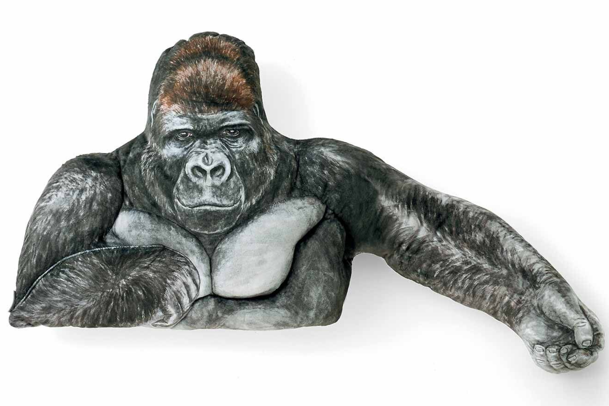 抽選で3人にプレゼントされるのは、同園の不動の人気を誇る〝イケメンゴリラ〟ことシャバーニをモデルにした「シャバーニのたくましい腕枕クッション」です。