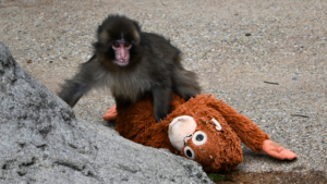 ヌイグルミの「オランママ」から離れる時間が増え、パンチくんは本物のサルの友達と、たくましく遊び始めています。