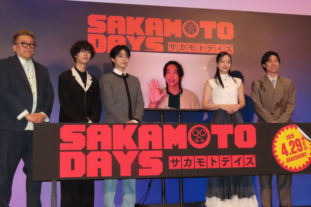この日、リモートで参加した目黒さんは、スクリーンいっぱいのサイズで映し出されたことに「こんなにデカく映ってて笑ってもらえたらうれしい」とにっこり。「マンガが好きで自分のために出たかった」作品で、4時間かかった太った坂本バージョンの特殊メークは「睡魔との闘いで1時間くらいで落ちました。寝たあとはメークさんが僕の頭を支えてくれた」と告白しました。