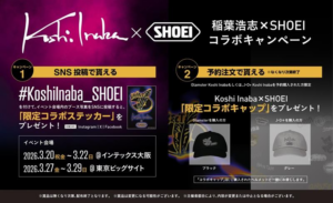 こちらのコラボレーションヘルメットは、3月27日〜29日の3日間、東京ビッグサイト(東京都江東区)で開催される『東京モーターサイクルショー 2026』会場内のSHOEIブースでも展示され、予約注文キャンペーンも実施されます。詳細は公式サイトをご確認ください。