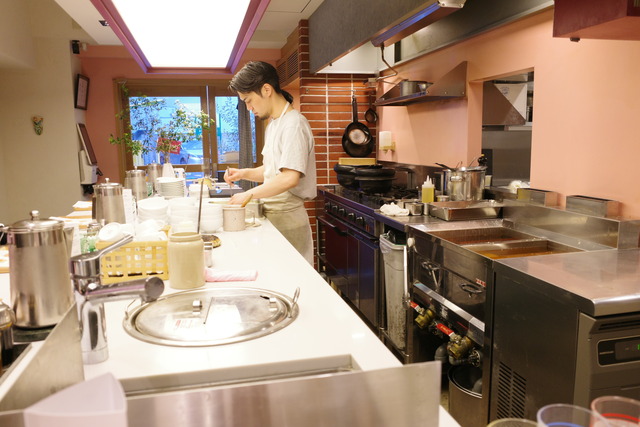 店内は、厨房を囲むL字型のカウンター席。シェフの手さばきを間近に眺められるライブ感は、カウンター好きにはたまりません。
