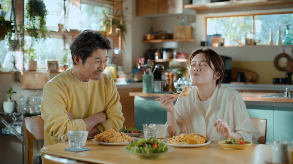 今回のCMでは、小芝さんと安田さんが親子役として初共演。安田さん演じる父親が「娘想いカツ」や「愛情チャーハン」を振る舞い、「日清ヘルシークリア」を使った「ウチメシ」の楽しさを伝える内容になっています。