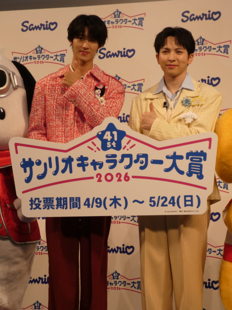 5人組ボーカルダンスユニットM!LKの曽野舜太さん(23)と吉田仁人さん(26)が9日、東京都内で行われた『2026年サンリオキャラクター大賞』の開幕イベントに出席しました。
