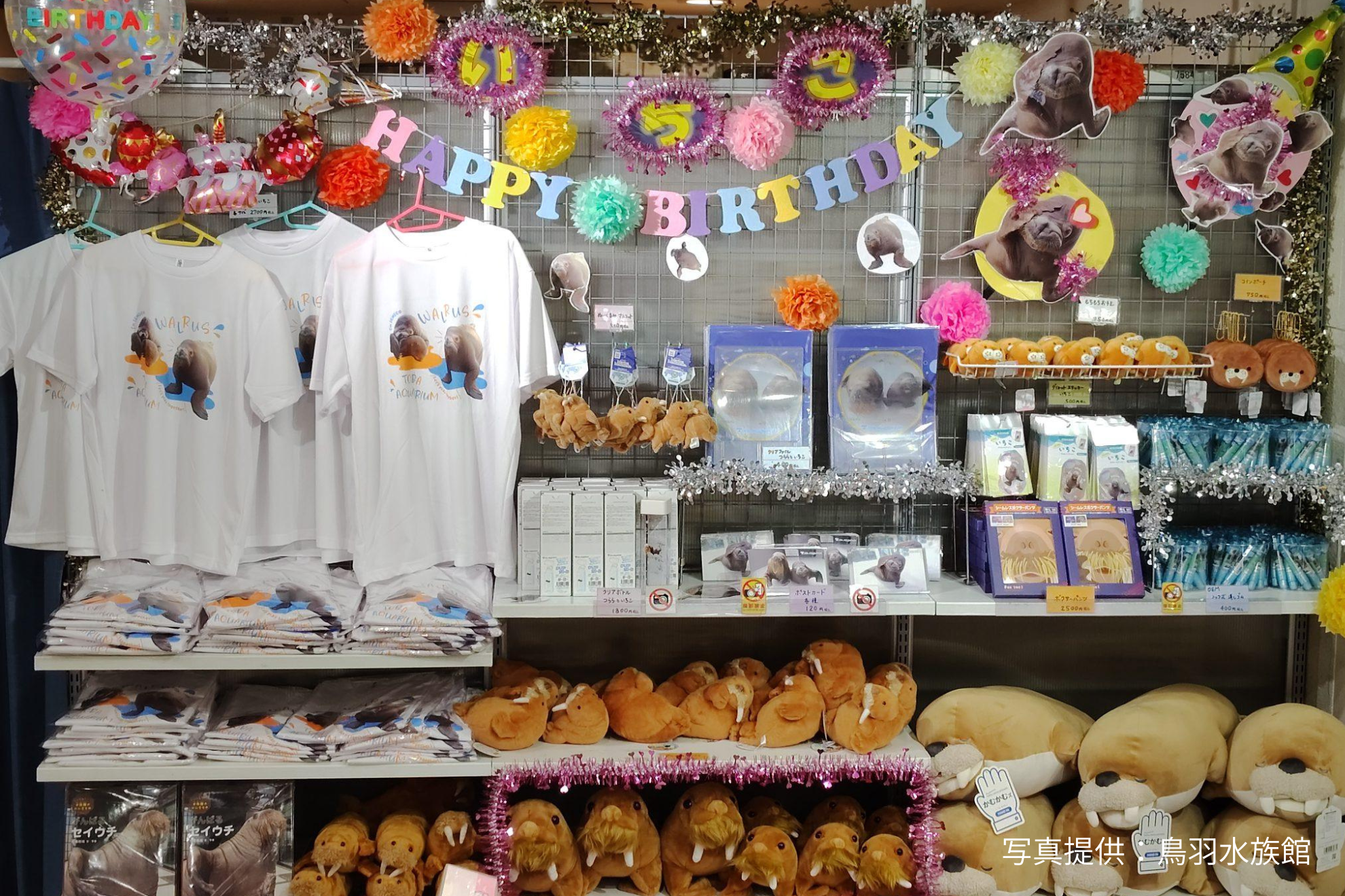 さらにお祝いはこれだけではありません。館内の「プラザショップ」では、誕生日を記念したいちこのオリジナルグッズも新登場しています。いちこの写真がプリントされたTシャツやステッカーなど、どれもいちこのかわいらしさがギュッと詰まったアイテムばかり。