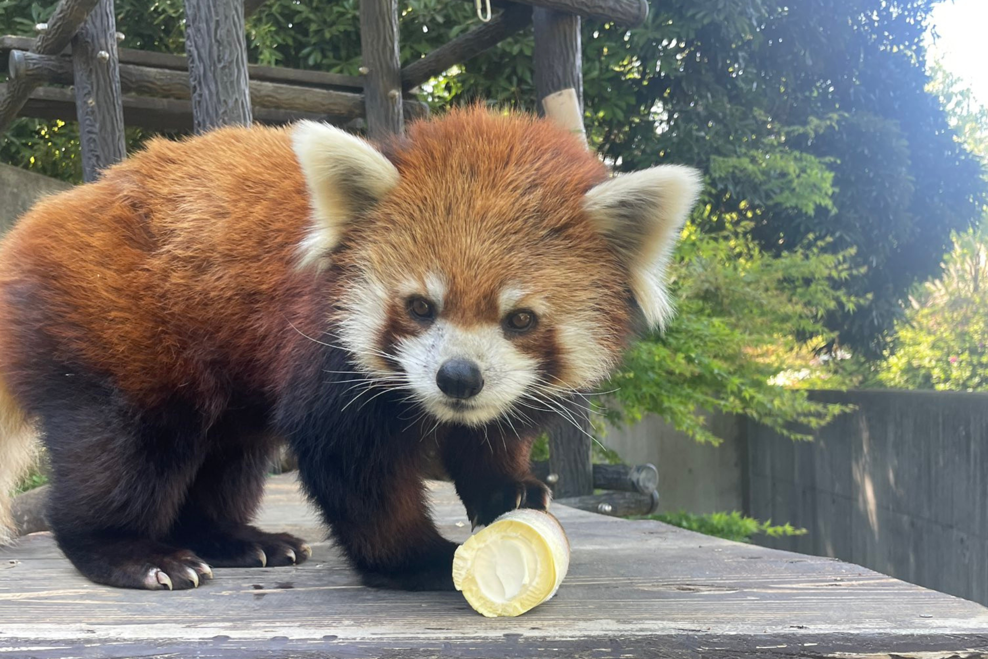 タケノコにかぶりついたのは、レッサーパンダのメイタです。 園内で採れたてのタケノコを、皮を剥かずにそのままプレゼントしたところ、元気いっぱいに食いついたそうです。公式Xでは、おいしそうにタケノコにかぶりつくメイタの動画が投稿されました。