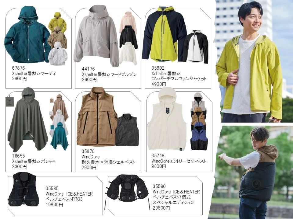 「XShelter暑熱αコンバーチブルファンジャケット」ファスナーをフード上まで上げれば、頭まで風が衣服内を駆け巡る斬新な構造。税込4,900円( ※ファン・バッテリー別売)。