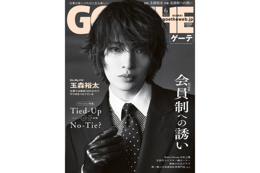 幻冬舎は22日、Kis-My-Ft2の玉森裕太さん(36)が表紙を飾るライフスタイル誌『ゲーテ6月号』(税込1,200円)を24日に発売すると発表しました。