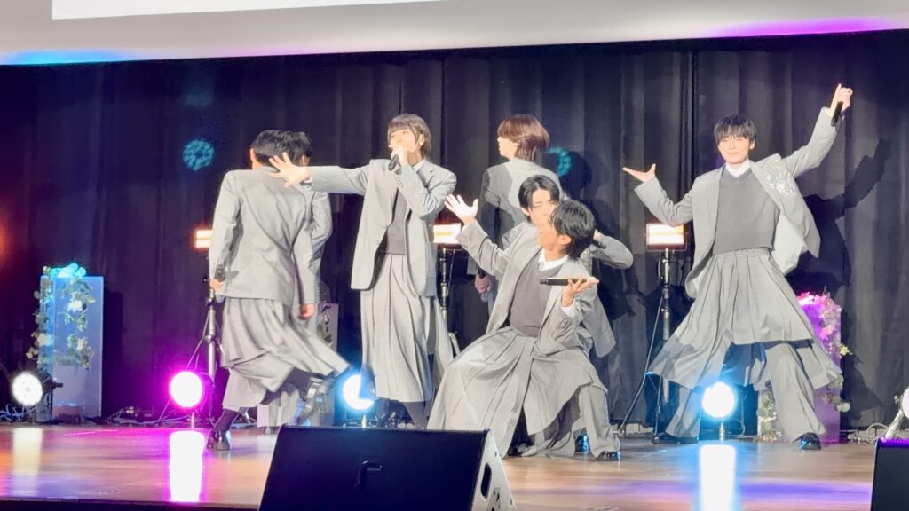 興梠大和(こうろき・やまと)さん「まずは初披露が終わり、少し安心しているのと同時に、今日は『楽しかったな』という気持ちでいっぱいです。今回の振り付けは、自分の見せ方という部分でリハーサルから非常に苦戦しました。特に大人数でフォーメーションを合わせる難しさを痛感しています。 まだまだ改善点はありますが、僕たちにはシアターという大きな武器があります。シアターやこれからのイベントを通して、僕たちがパワーアップし、成長していく過程をファンの皆様に見ていただけたらありがたいです。本日はありがとうございました」