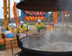 道路を走る「巨大鍋」 日本一の芋煮会フェス準備が話題に