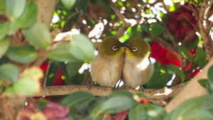 サザンカの陰でひっそりと 2羽のメジロが見せた愛らしい時間に癒される人続出